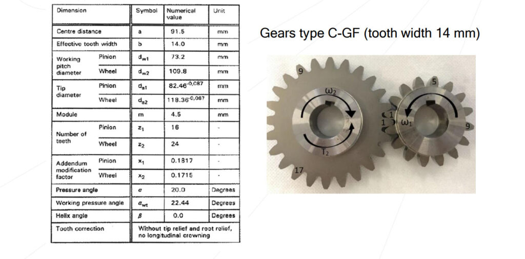 The type of gears used in this test rig is as follows: