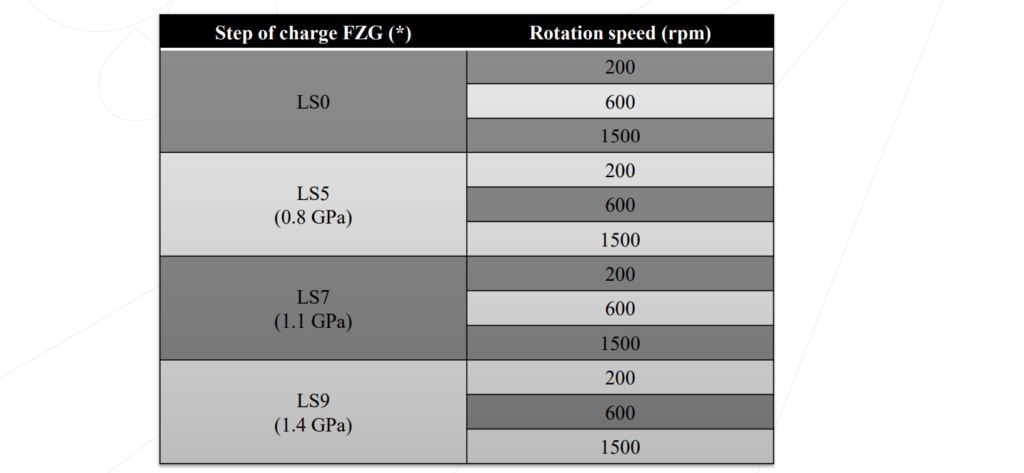 The test rig used is the so-called FZG, defined by DIN 51 354 parts 1 and 2.